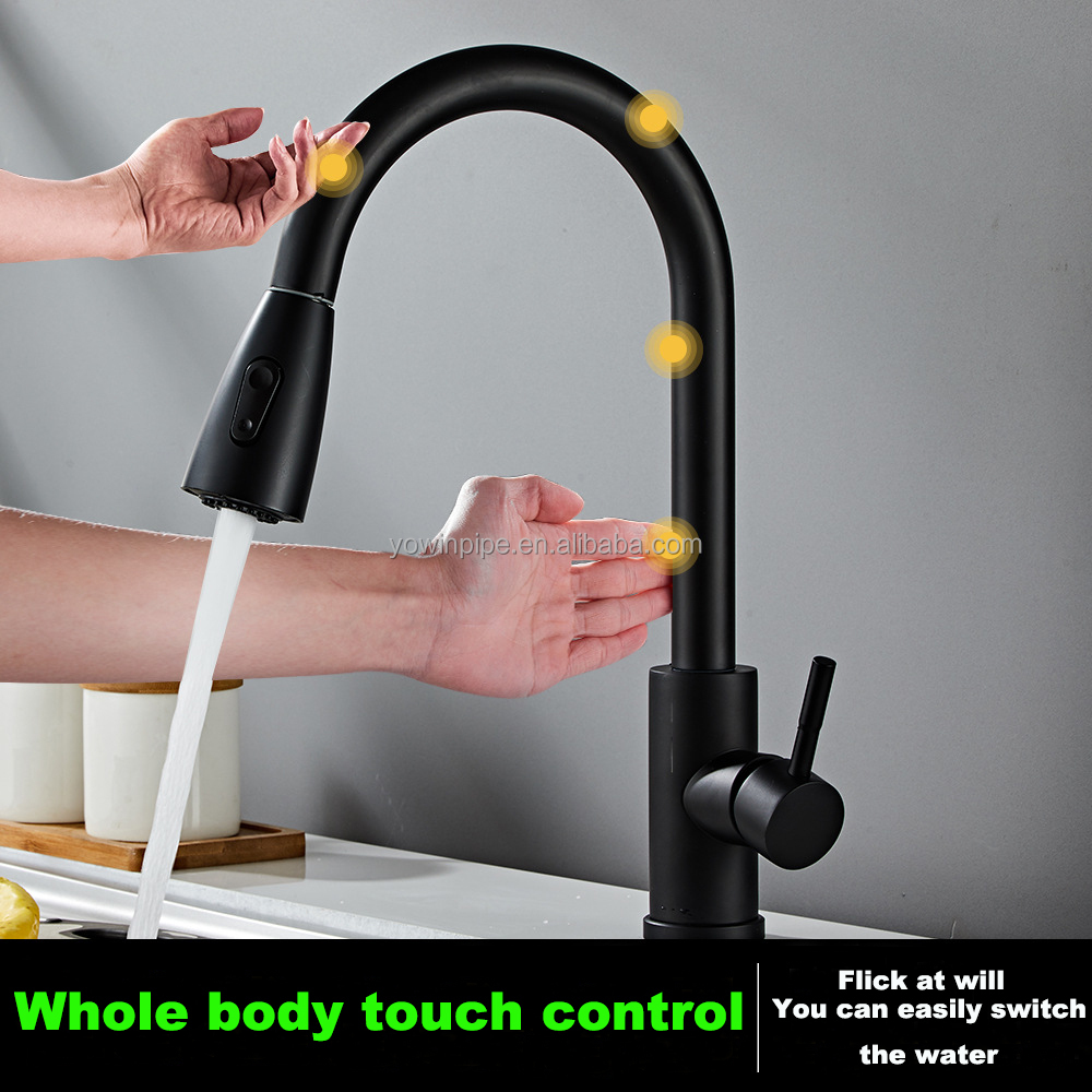 Yowin 304 stainless steel touch kitchen faucets with multi-function smart touch sensors