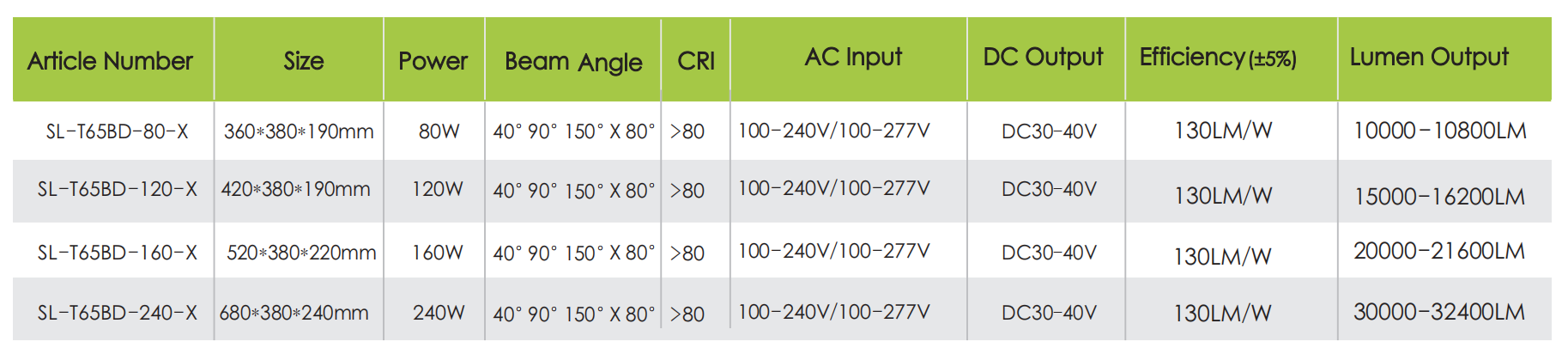 | model: | SL-T65 | Working life (hours): | 50000 |