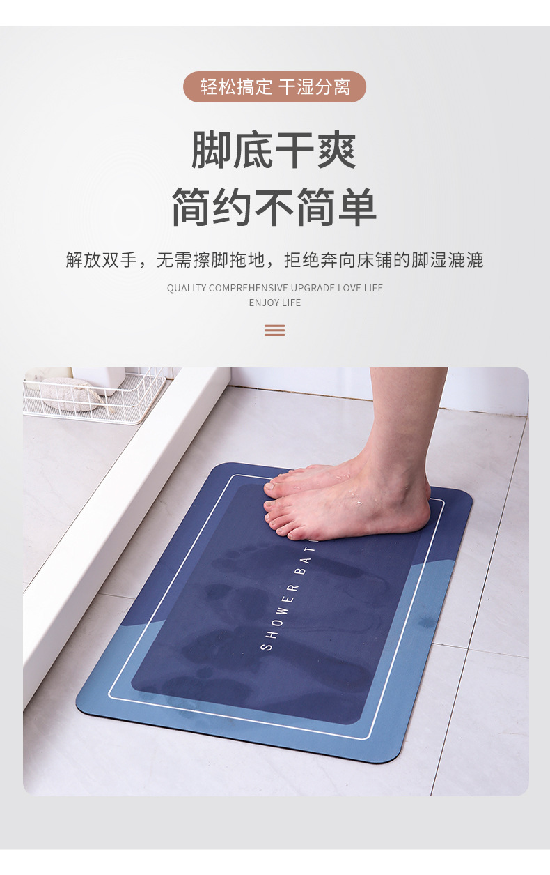 usage: bathroom pattern: geometric Package preview: model: DT-001 Supply capacity: 1,000,000 pieces per month feature: sustainable, well stocked Material: diatomite design style: modern brand: Celestial stone bath mat size: Standard size 60*39*0.9cm, welcome to customize Origin: Zhejiang, China...... -