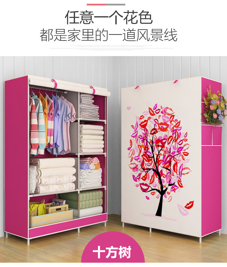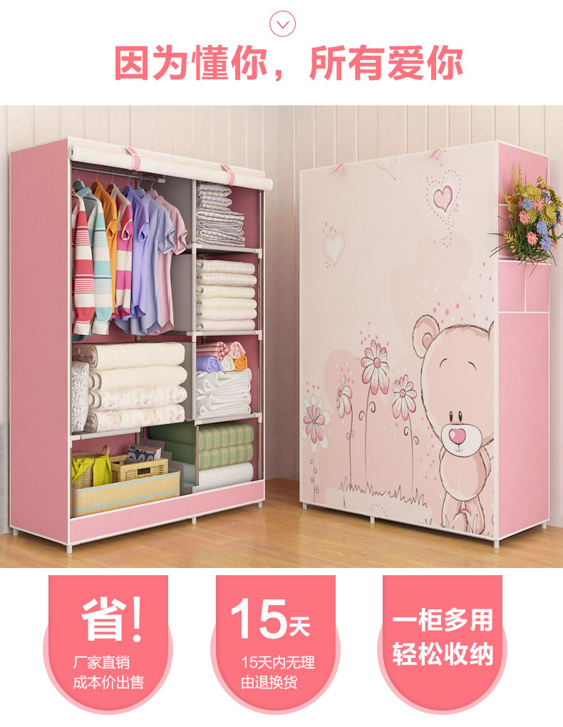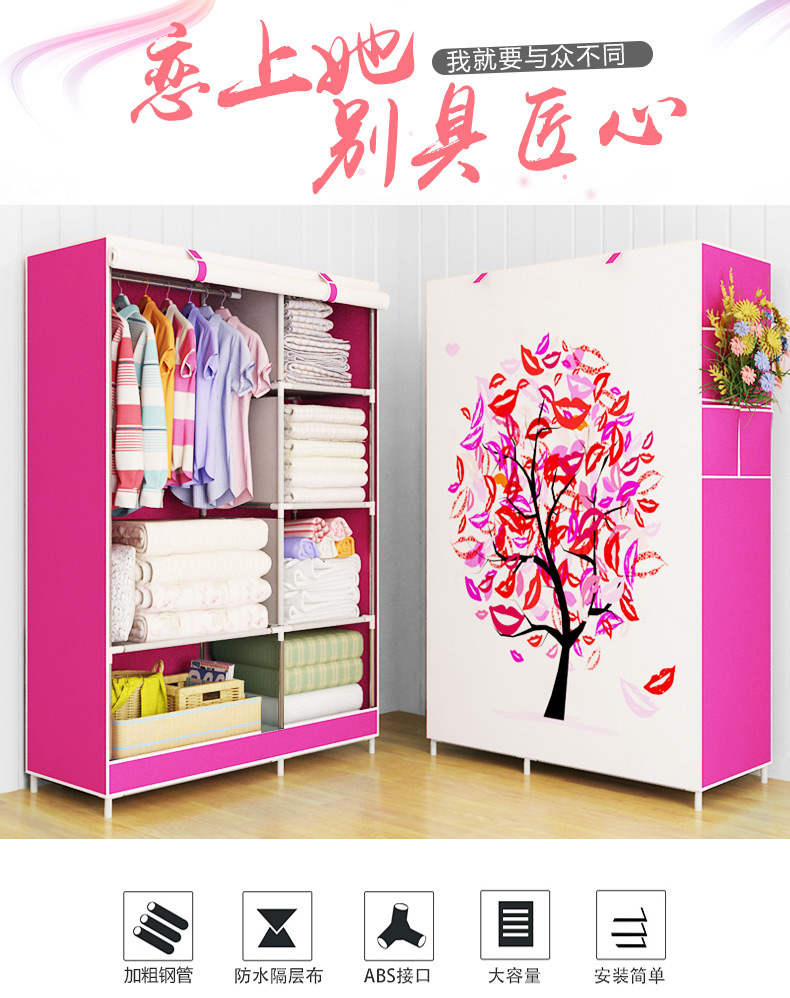 Pink cheap plastic portable wardrobe wardrobe easy to assemble pp portable wardrobe modular cabinet almari