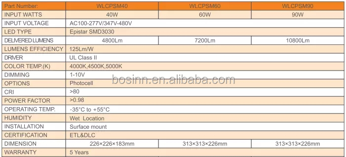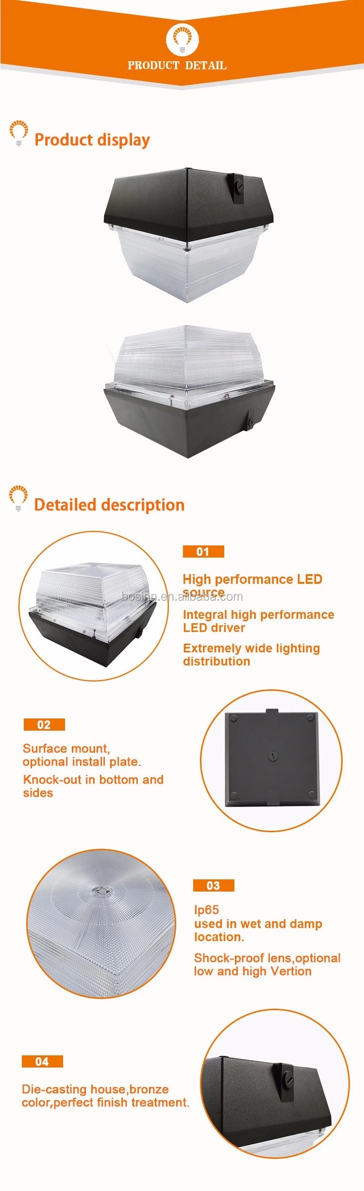 Color temperature (correlated color temperature): 3000-6000K aspect: square application: gas station,gas station Lifespan (hours): 50000 Warranty period (years): 5 years Beam angle (°): 120 Certification: ETL FCC CE NOM product name: Surface mounted LED canopy light Lighting Solutions Services:...... -