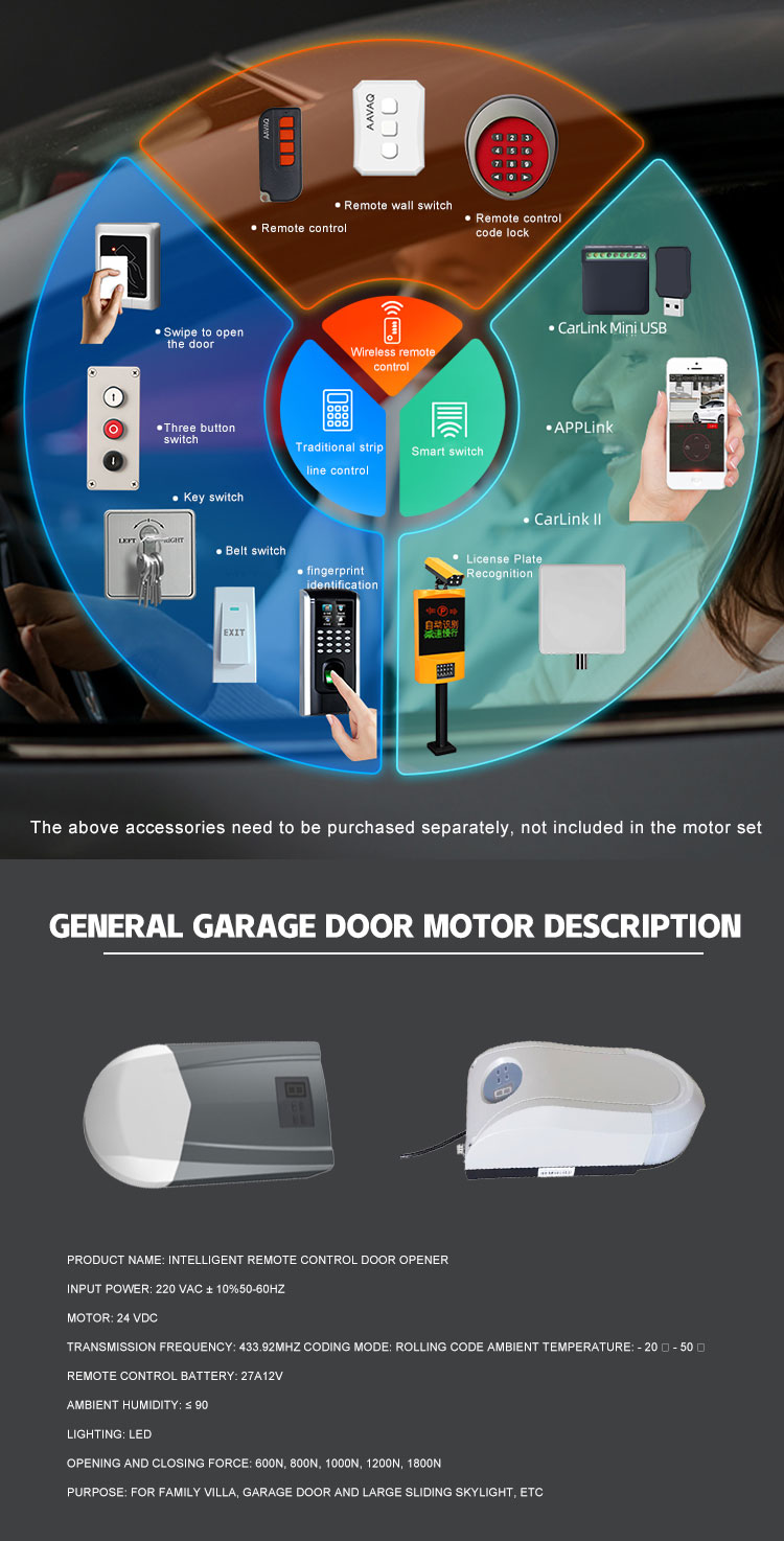 product name: Smart Garage Door Opener usage: Overhead Sectional Garage Doors Origin: Guangdong, China cable length: 5 meters design style: modern application: garage Warranty: 1 year payment terms: Western Union, T/T Packaging Details: Sales unit: Single piece Package size: 16X12X6 cm Gross weight.... -