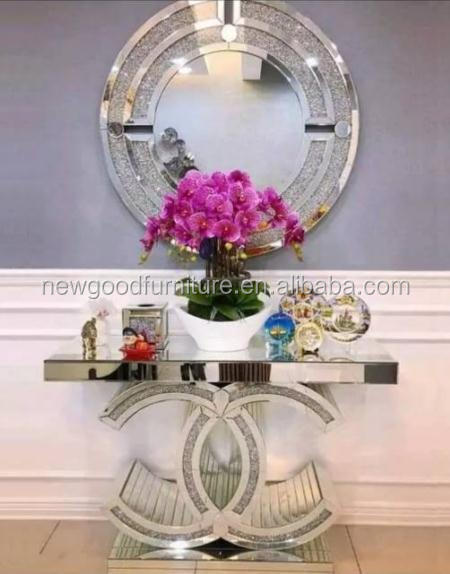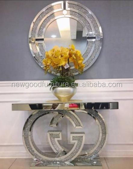 Foshan Factory Wholesale Entrance Table Broken Crystal Diamond Entrance Table Set with Mirror Modern Home Picture 1 Set
