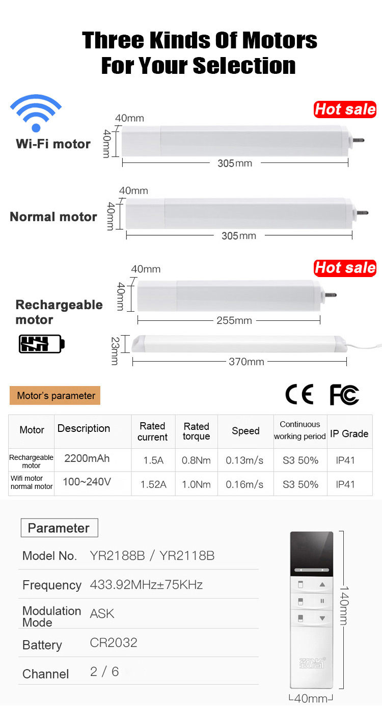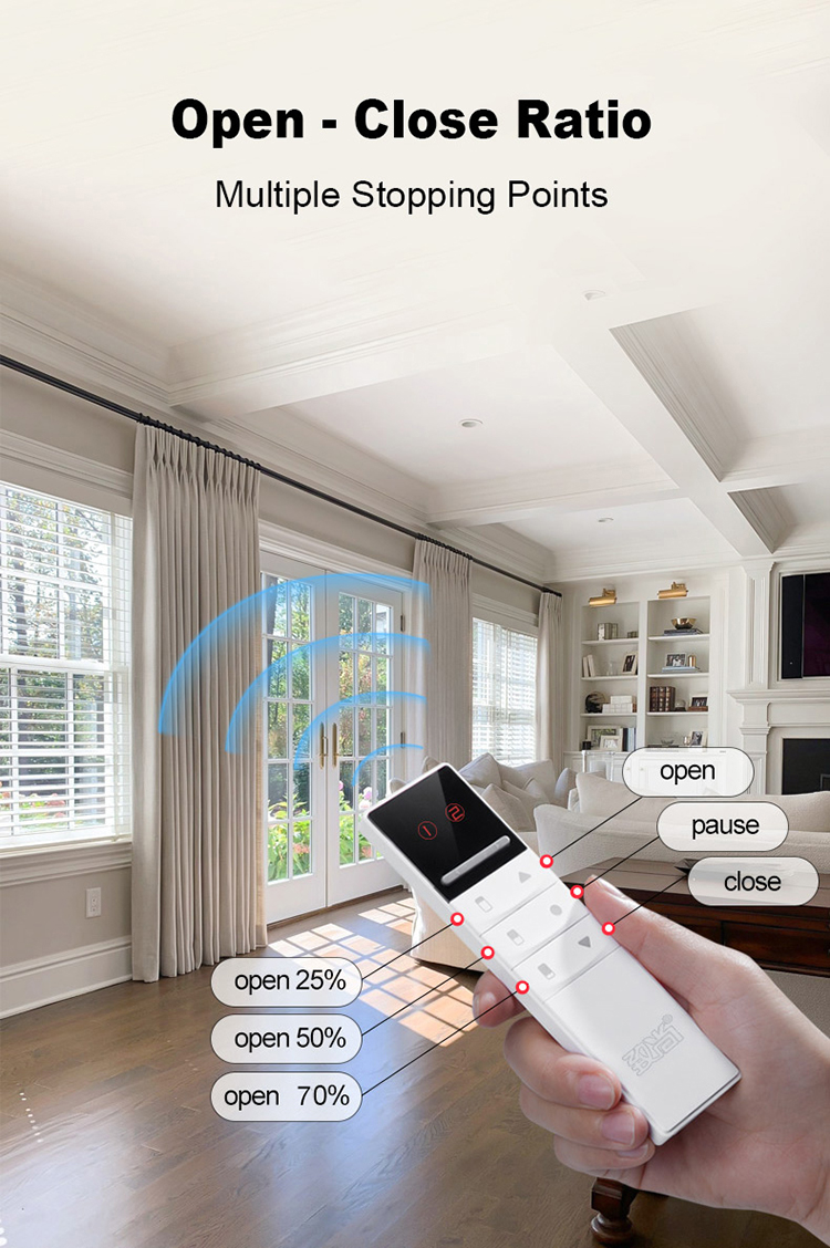 (1) The Wifi motor uses 100~240V power supply, it has cables and needs a power socket near the window. Or Amazon Echo device, you can voice control the wifi motor through Google Assistant or Amazon Alexa. Example: You say "Alexa open the blinds 70% and the wifi motor will work for you". you Time can be set to turn on and off. |