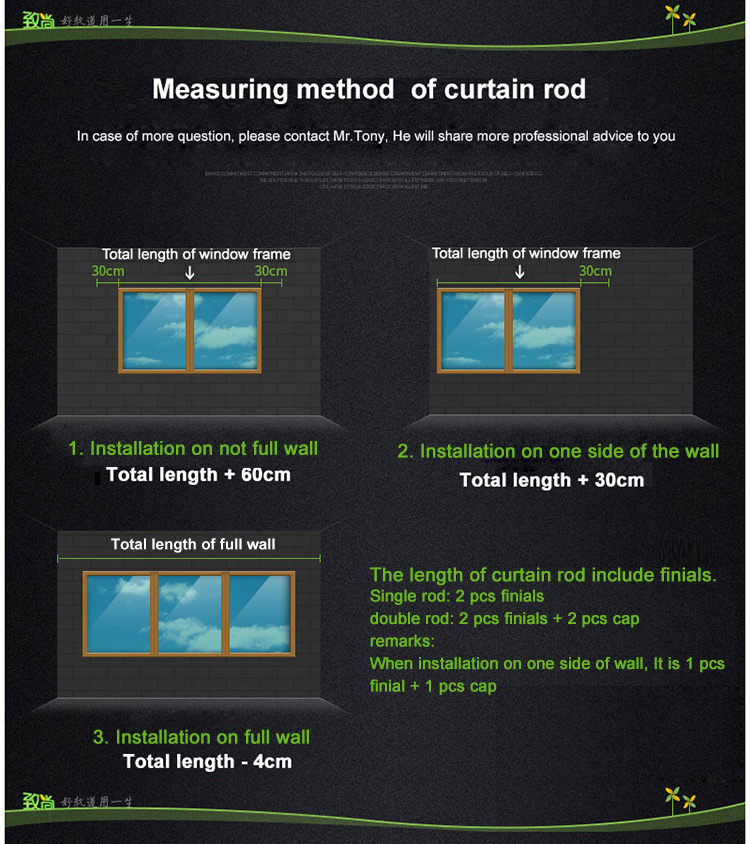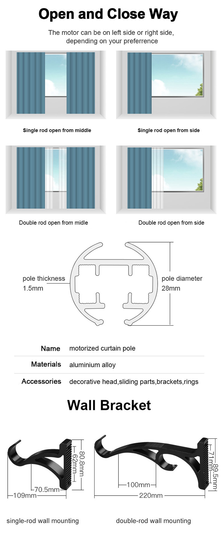 (1). Please tell us the exact length of the curtain track, curtain open from the middle or side. If you don't know the length of the curtain track, please contact Tony to help you |