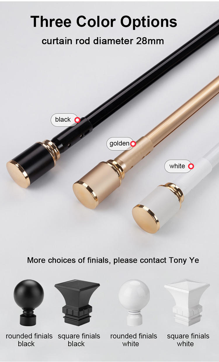 color: Gold, silver, black, white ring: iron Curtain rod, track and accessory types: curtain rod brand: Processing type: single Supply capacity: 1,000,000 pieces per month Packaging details: OPP model: RA-A001 diameter: 25mm-28mm length: 1.2m-2.1m,1.6m-3.0m,.0-4.0m, customized payment terms: L/C,...... -