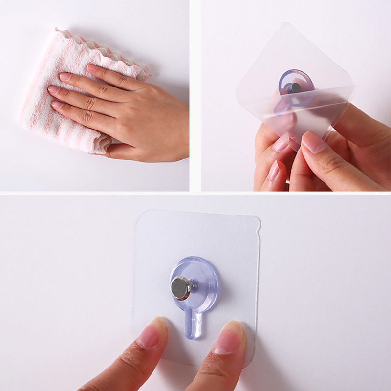 Double-sided tape wall hook, strong, traceless, transparent suction cup wall storage rack, suitable for kitchen and bathroom