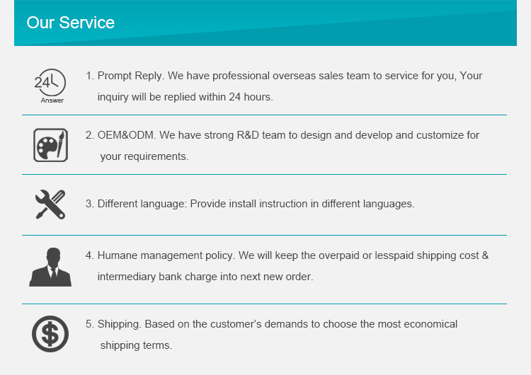 | Serve | Cooperative staff and good teamwork, quick answer to all your questions, OME/ODM quotes |