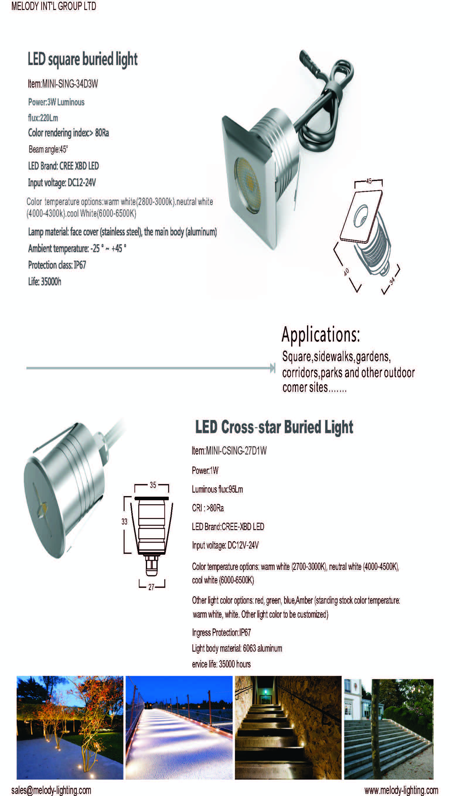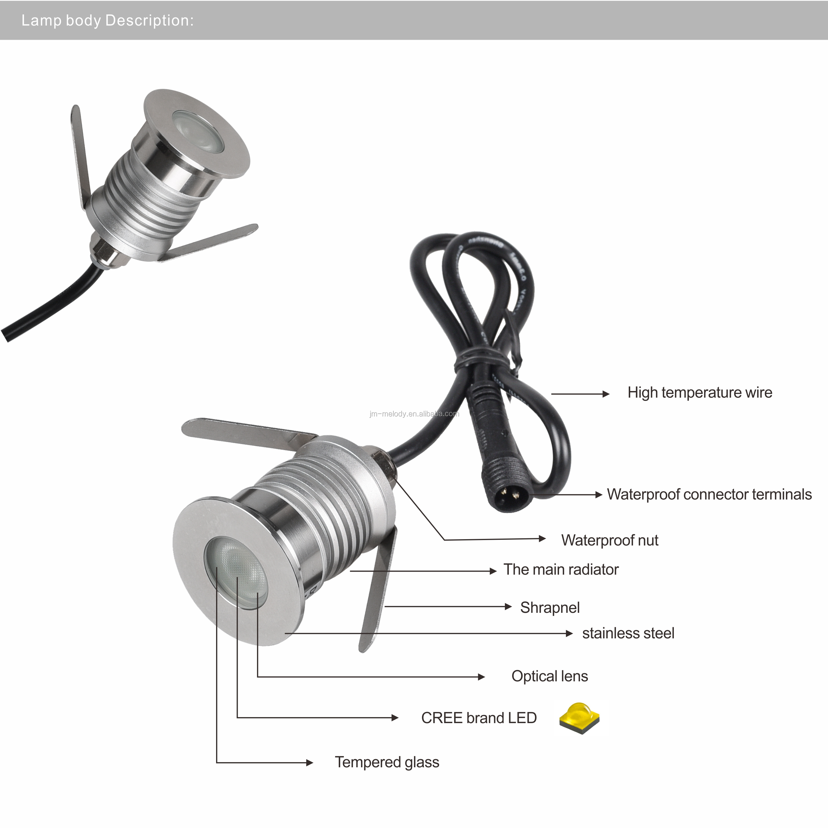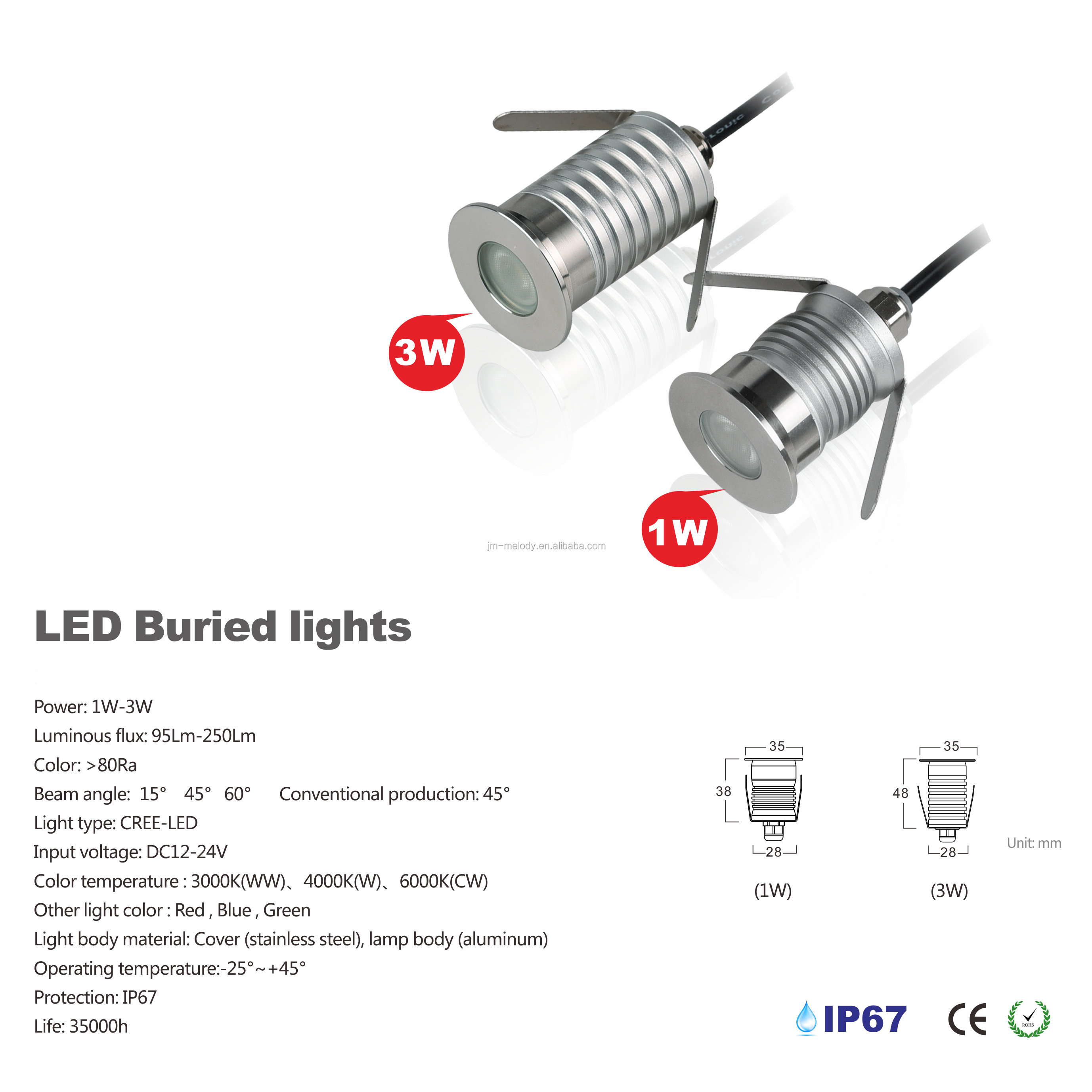 1w 3w DC12V mini led inground light waterproof IP65 LED foot light for underground stairs LED deck steps DC24V inground light