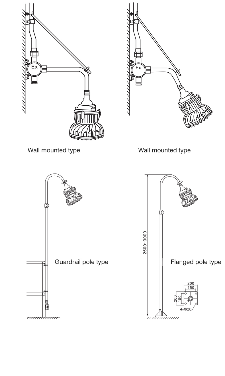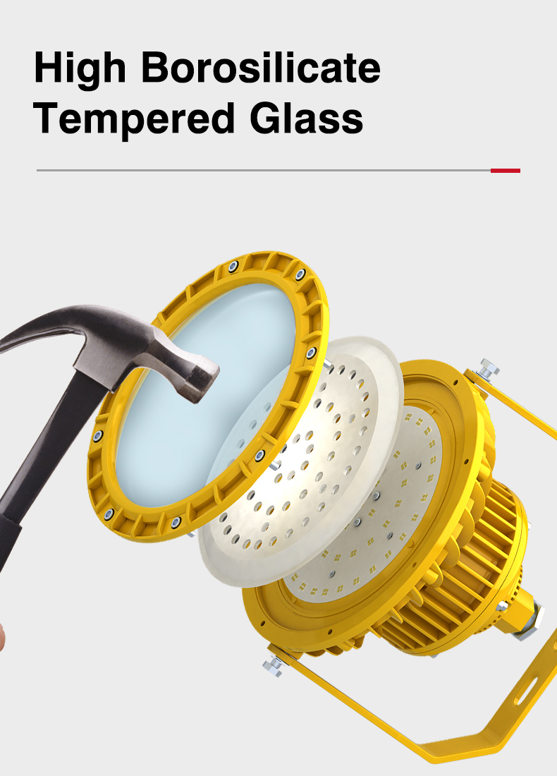 Protection class: IP65 Material: Die-cast aluminum + tempered glass cover Explosion-proof grade: Exd II BT4 place of origin; place of origin: Guangdong, China color: red/yellow/blue/green Lighting Solutions Services: Lighting and Circuit Design Work pressure: 12v/24v/220v optional Applicable cable..... -