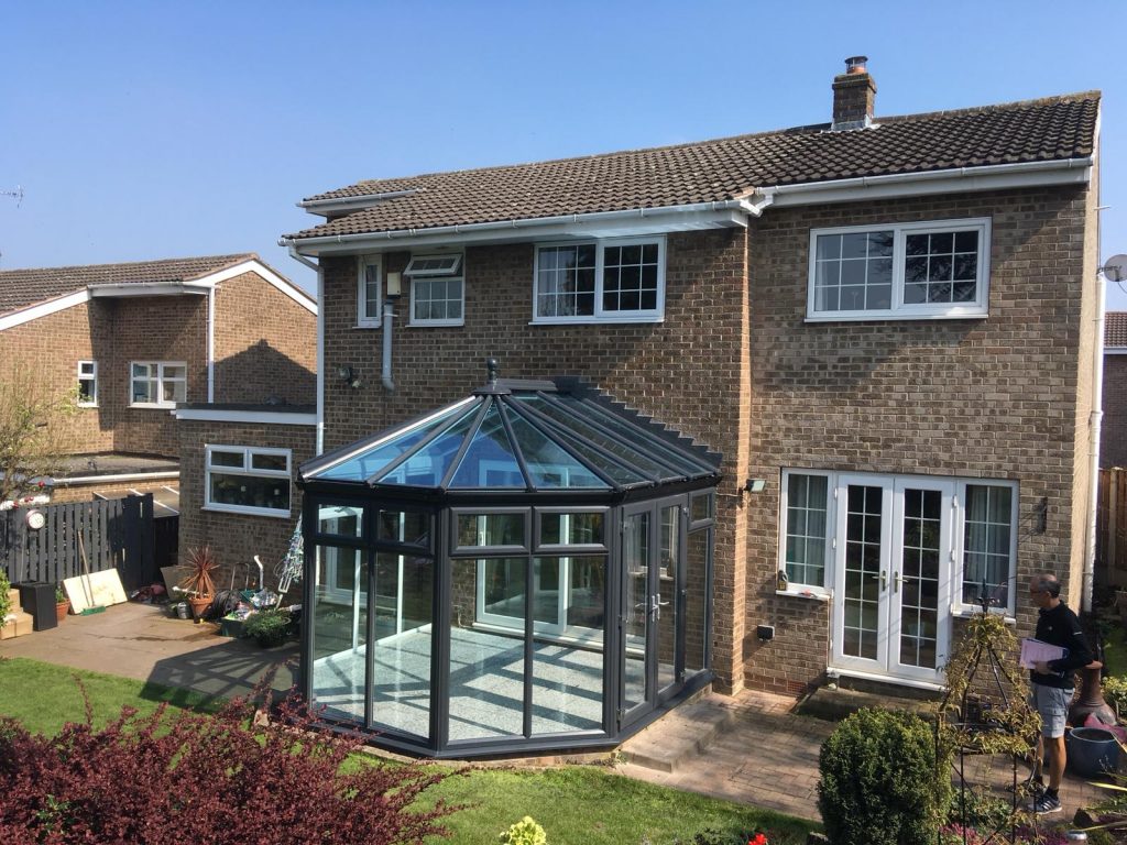 Dark gray aluminum profile glass sun room