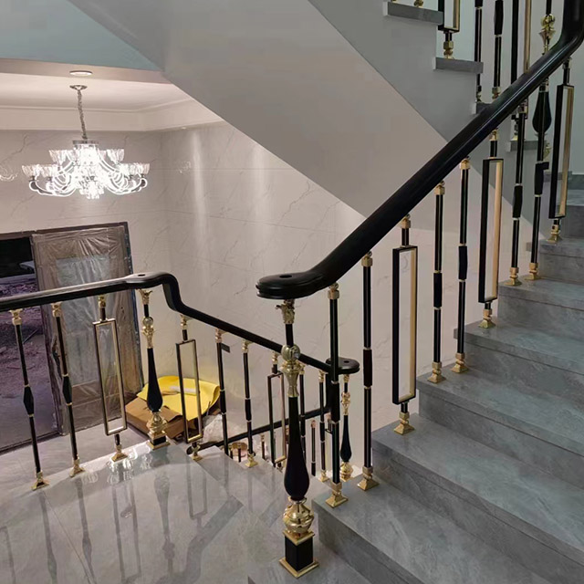 Modern luxury iron brass stair railing indoor stair railing brass railing
