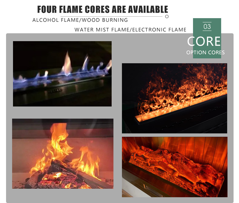 | Flue: | wood | Fire core options: | Alcohol/Wood/Water Mist/Electronics |