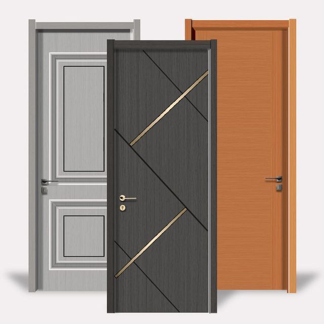 PVC Wooden Door House Interior Swing Wooden Door Set Waterproof Newest Design Picture Frame and Accessories Handle