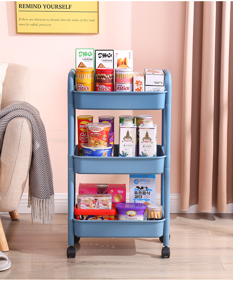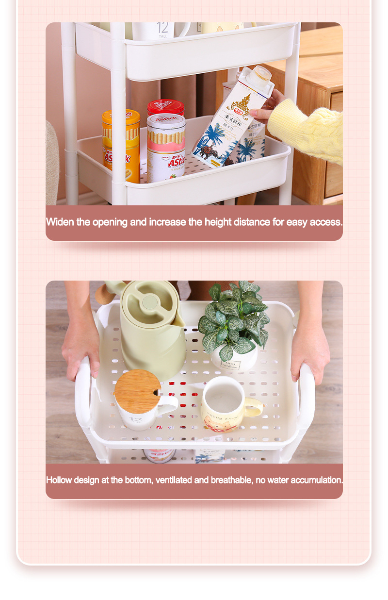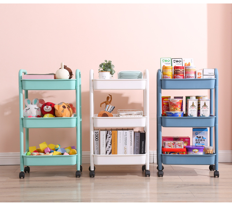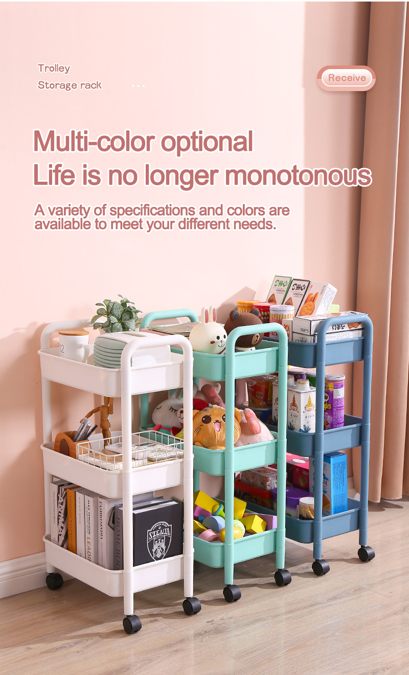 Kitchen office plastic basket 3-layer storage organizer storage rack practical trolley storage cart