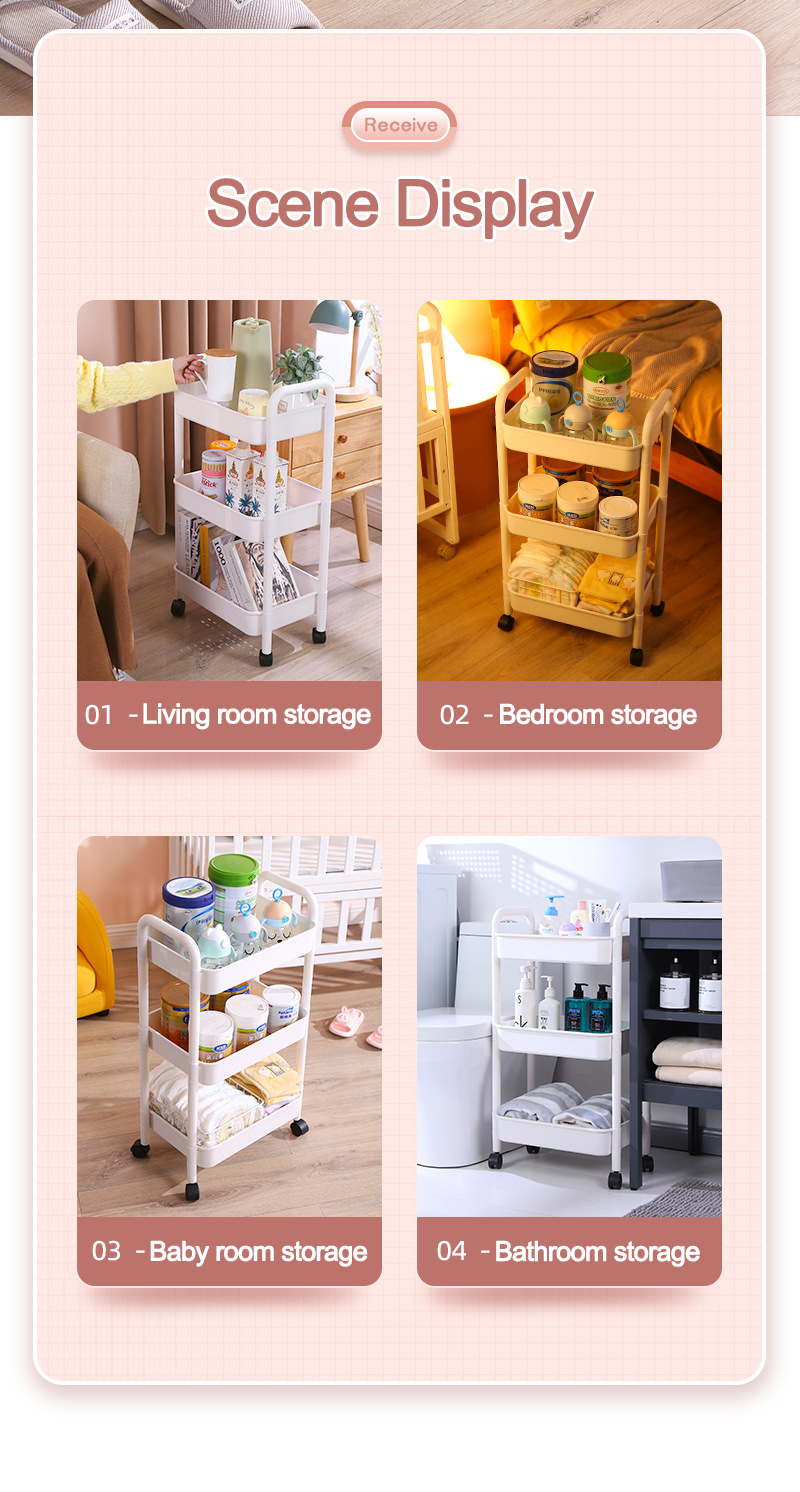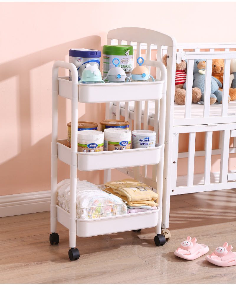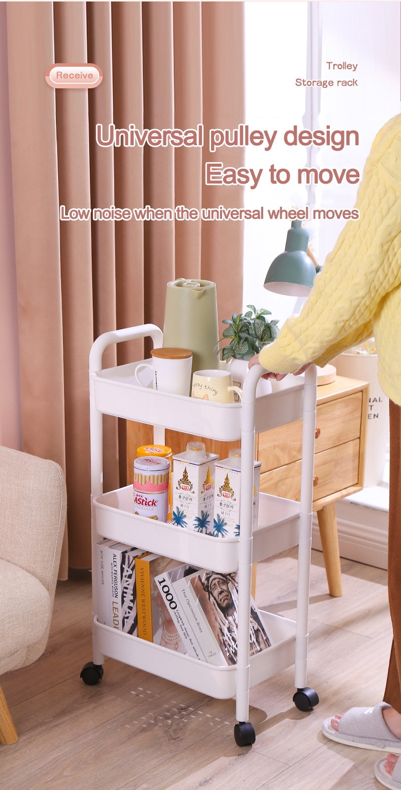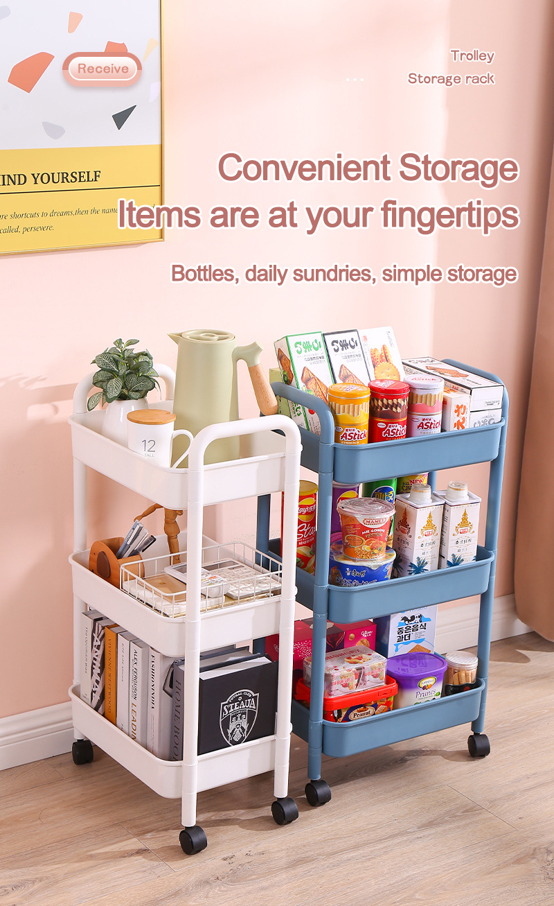 Kitchen office plastic basket 3-layer storage organizer storage rack practical trolley storage cart