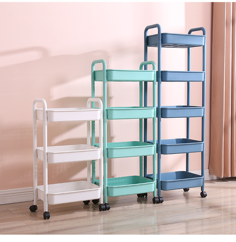 Hot Sale Easy Assemble Storage Rack With Wheels Removable Utility Cart Plastic Kitchen Trolley Bathroom Rolling Storage Cart