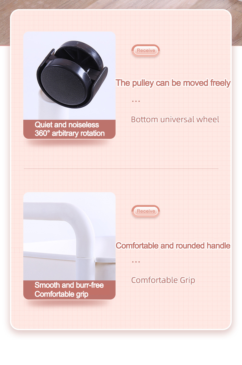 【Worry and effort】The pulley design lets you slide the cart with ease, and the increased tier spacing keeps items on the middle tier within easy reach.