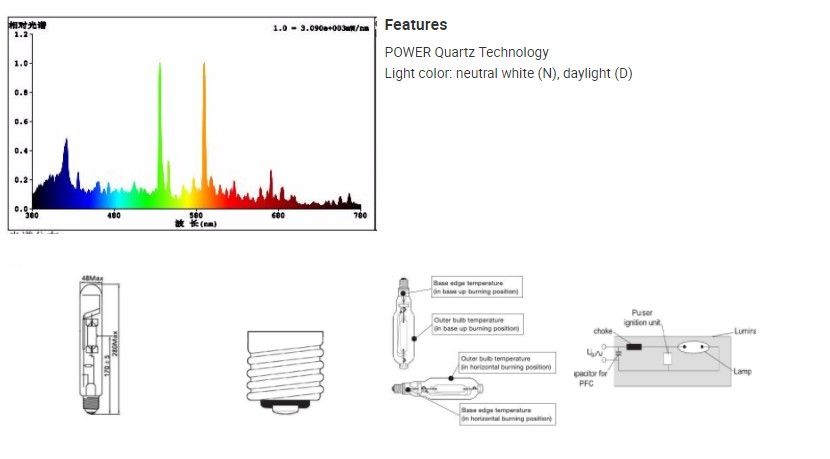 HPI-T 250W metal halide lamp 220V projector lamp 4500K 5700K for street lights