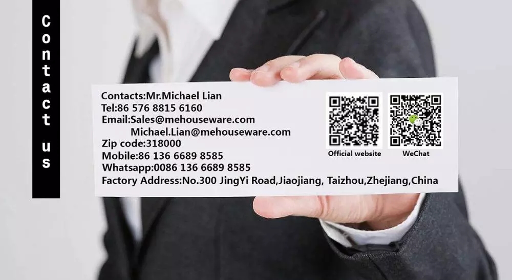 | contact information | Whats App: 0086 136 6689 8585, Tel: 0086 8815 6160, www.mehouseware.com |