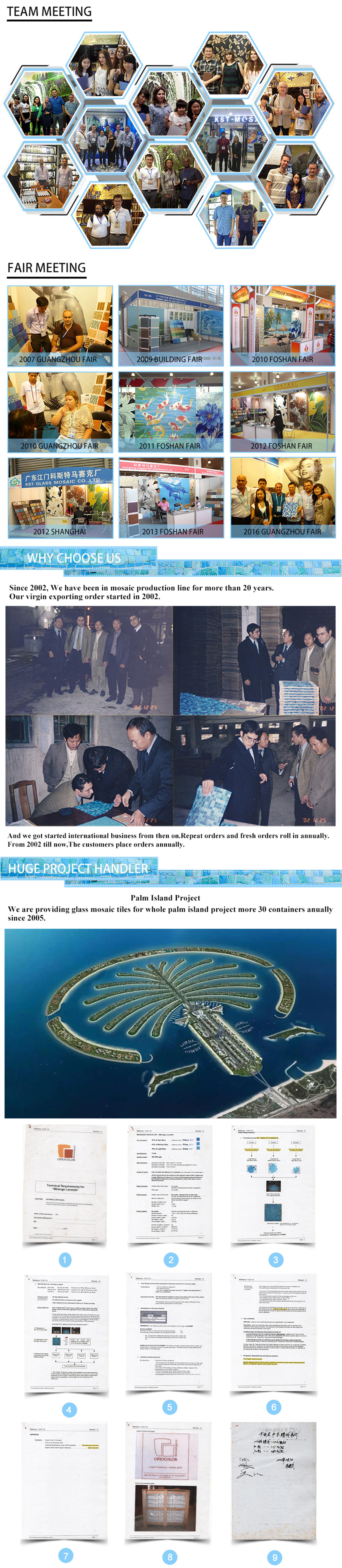 We are a trading company with a factory. More than 20 years of mosaic manufacturing experience, mature technology and experienced workers; strong production capacity (40 containers per month) to ensure on-time delivery time; professional inspection team to ensure the quality level; full responsibility for any product problems; guaranteed as a trader Suppliers, we secure transactions.