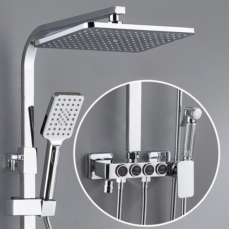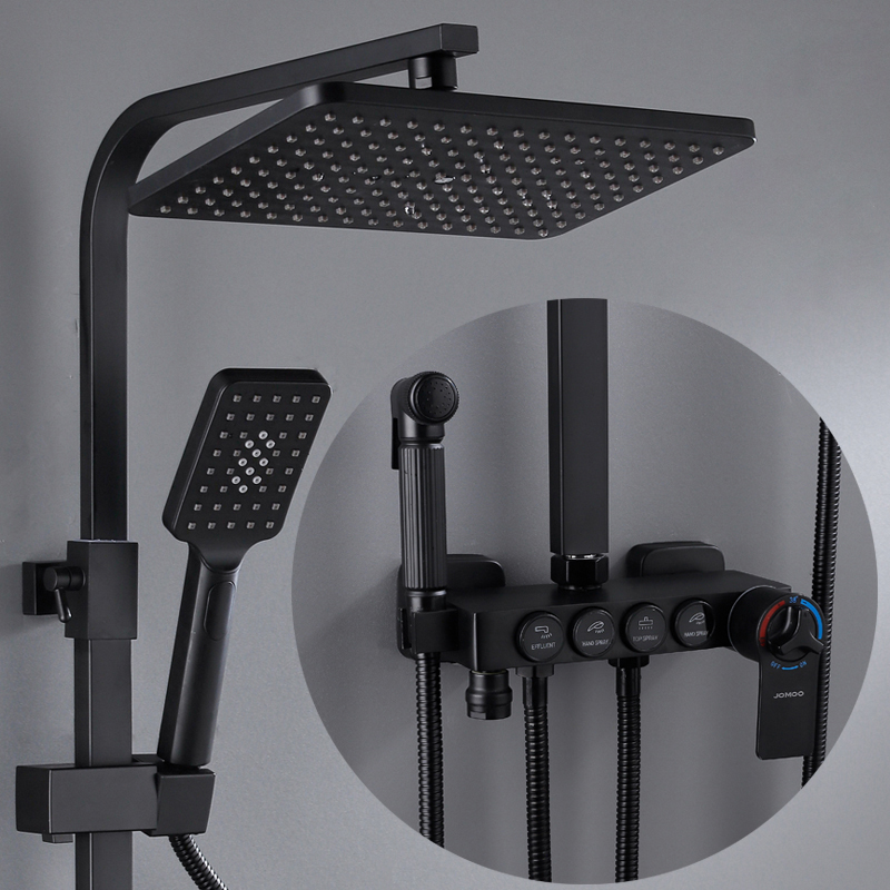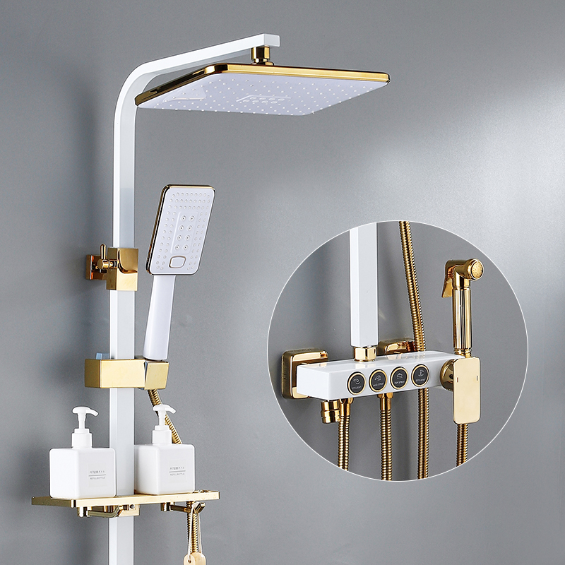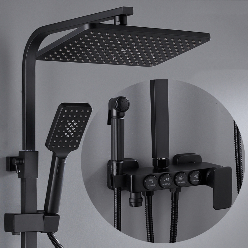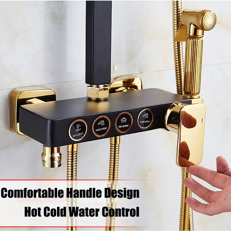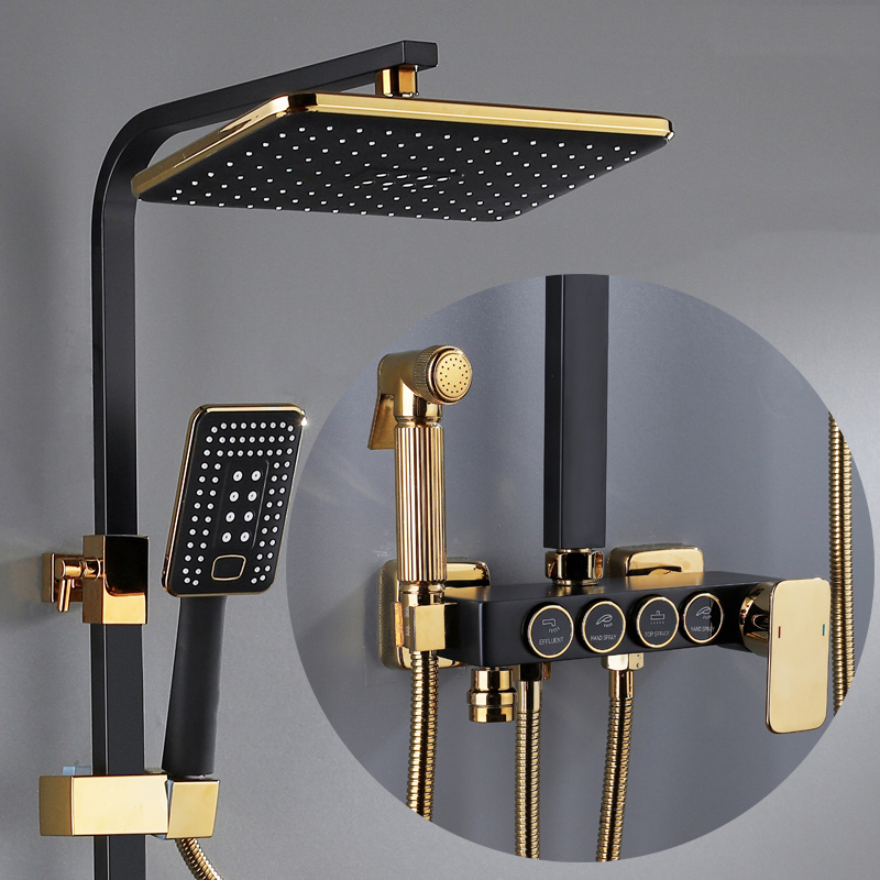 Bathroom shower system black gold bathtub faucet hot and cold bathroom faucet thermostatic button shower set
