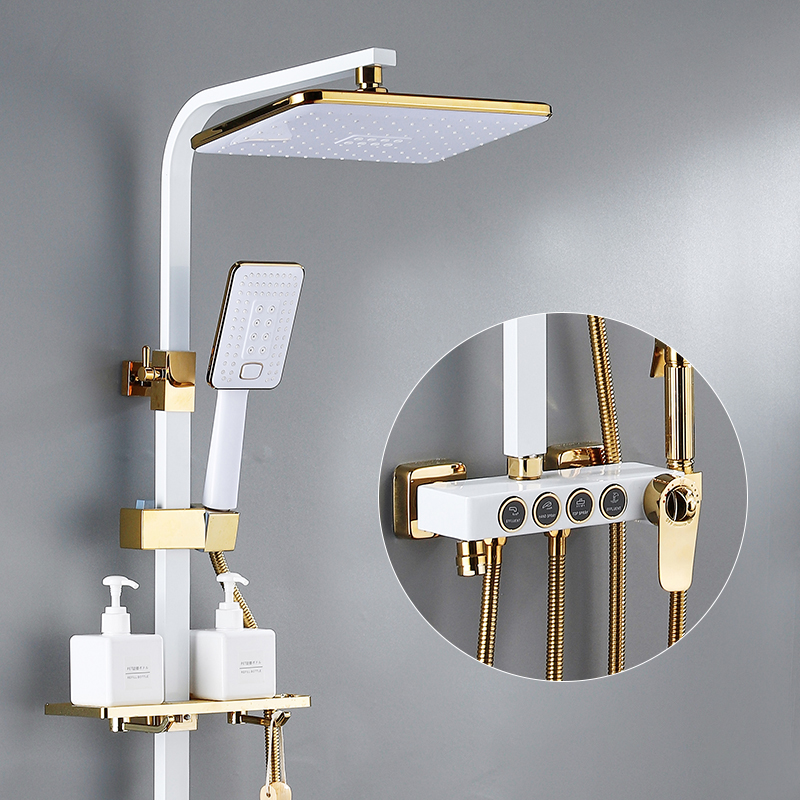 Bathroom Gold Bathing Luxury Shower Set 4 Functions Piano Brass Thermostatic Shower Set Hotel