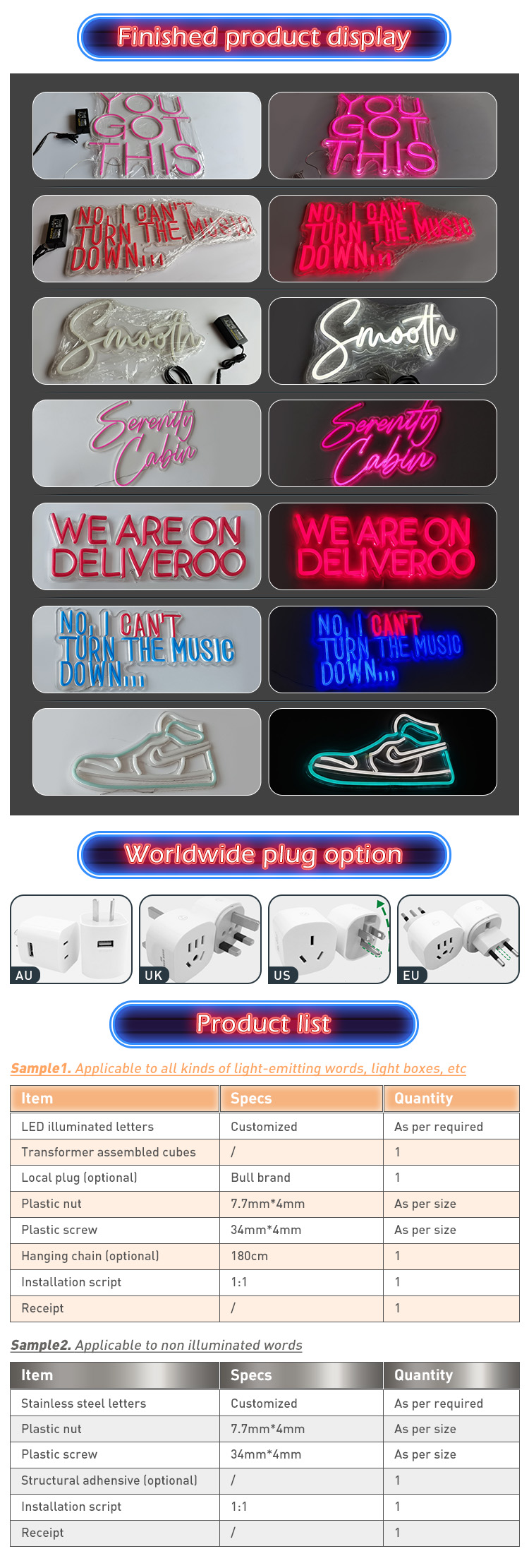 application: Residential Lifespan (hours): 50000 Item Type: neon lights Install: installation. suspension port: Shanghai model: AM090703 Light body material: pvc Product weight (kg): 3 thing: custom neon sign brand: Mitsubishi Corporation Origin: Anhui, China Color temperature (CCT): 5000K...... -
