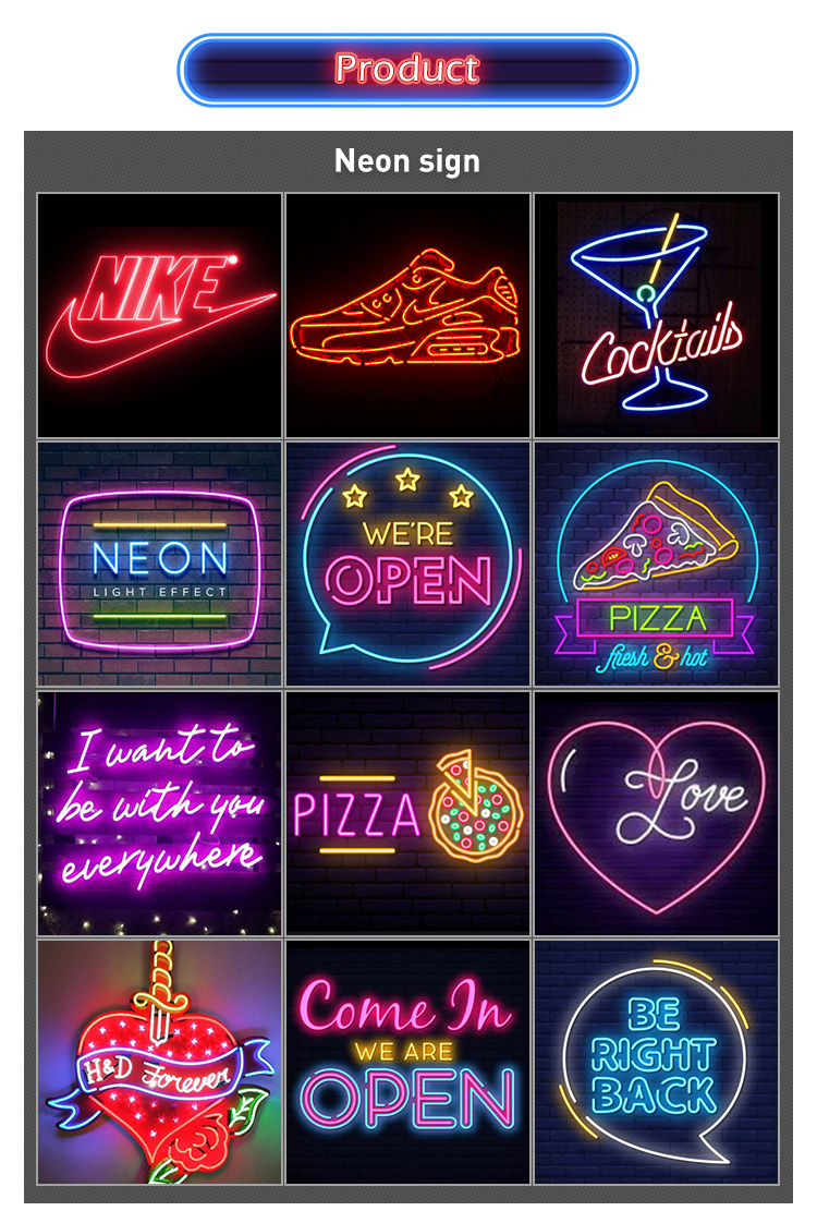 brand: Eviscerate LED color: Customizable color color: custom color Lifespan (hours): contact us usage: Shop sign Item Type: neon lights Warranty (year): 2 years Acrylic color: transparent/black/other Lamp luminous flux (lm): > 5000 Working life (hours): 50000 Origin: Guangdong, China Luminous...... -