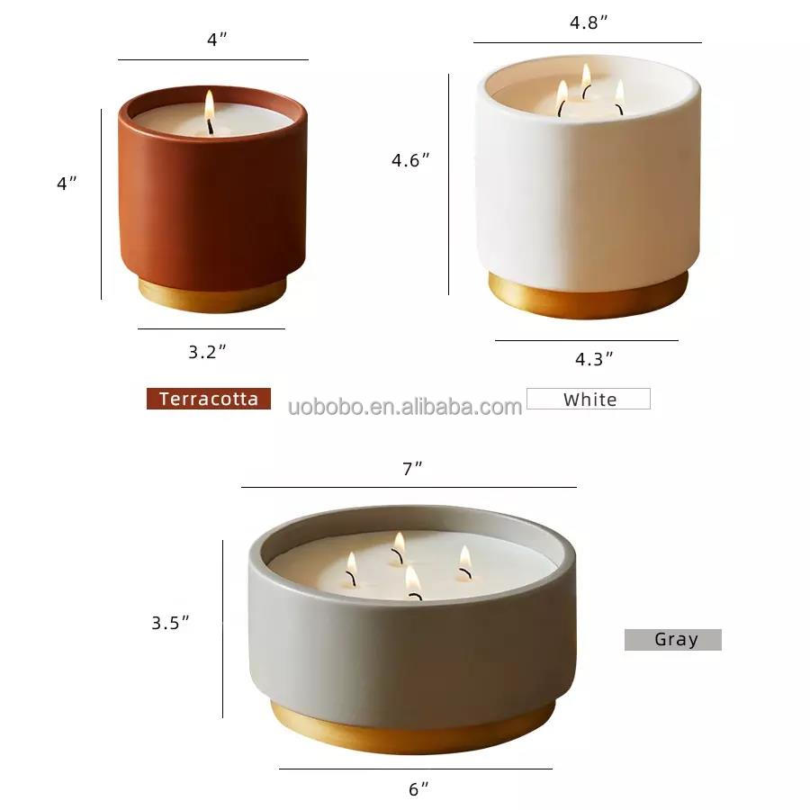 Gold Base Round Candle Jar White Ceramic Candle Jar Nordic Candle Jar