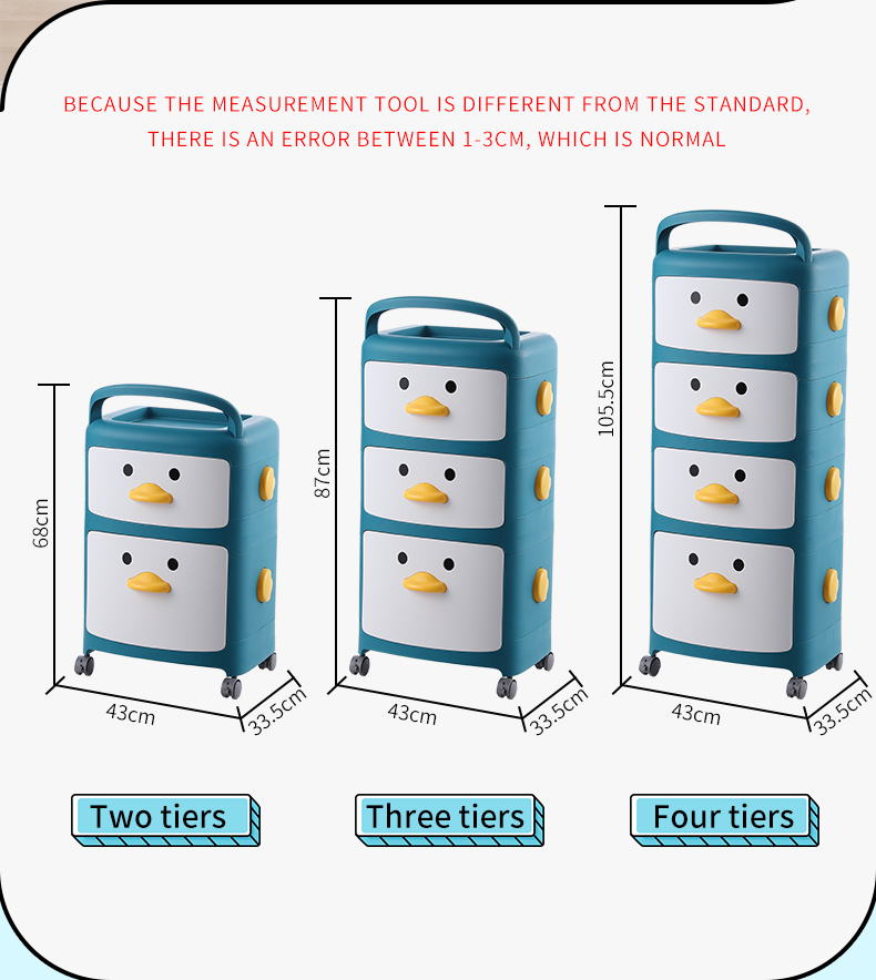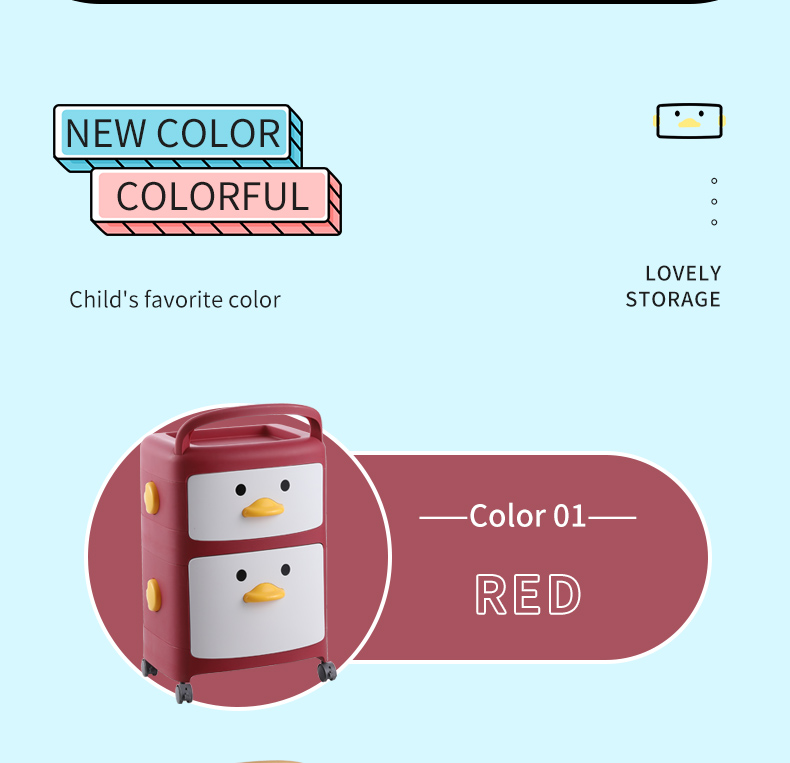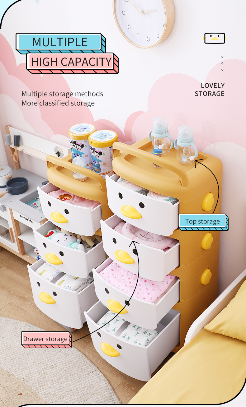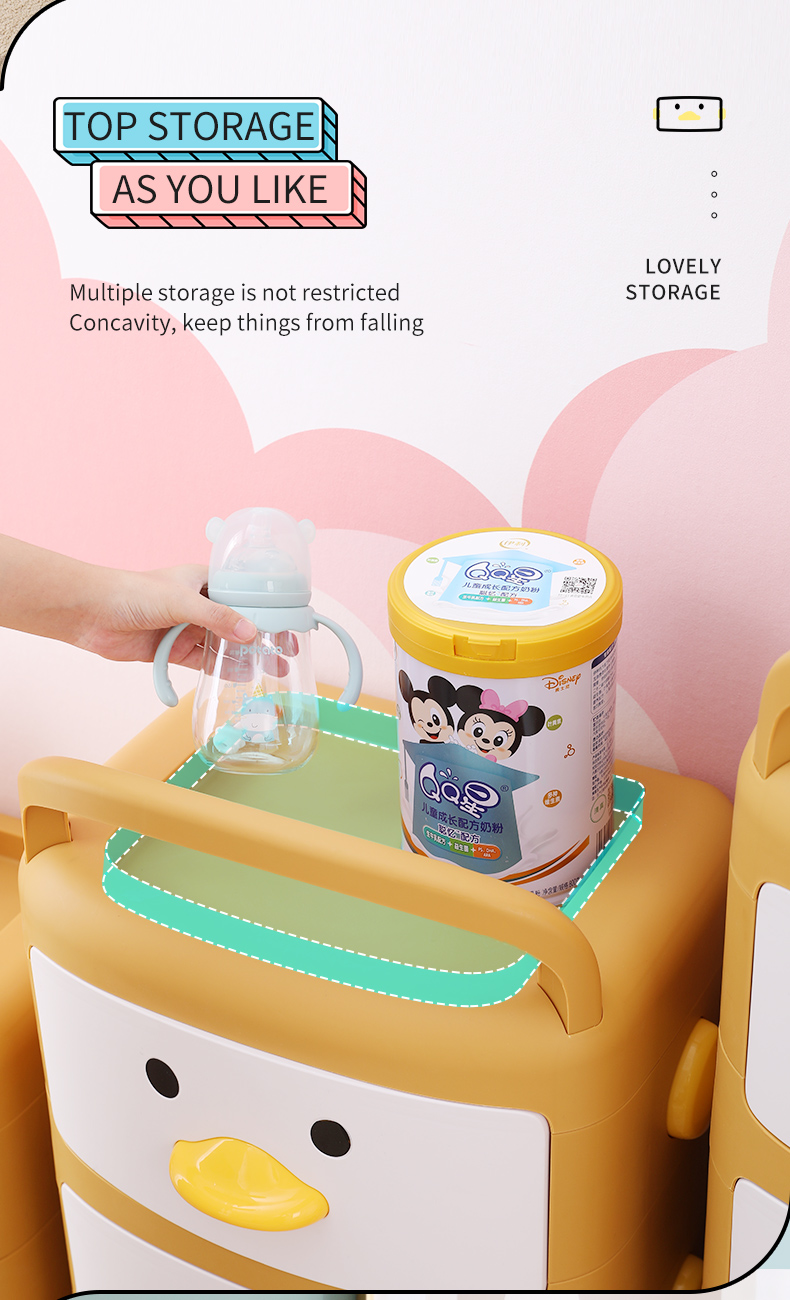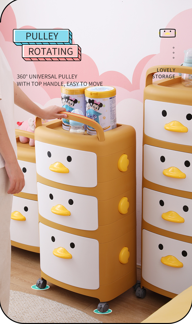 2022 Popular Style Kids Cartoon New Color Organizer Plastic Portable Kids Drawer Toy Storage Cabinet with Wheels