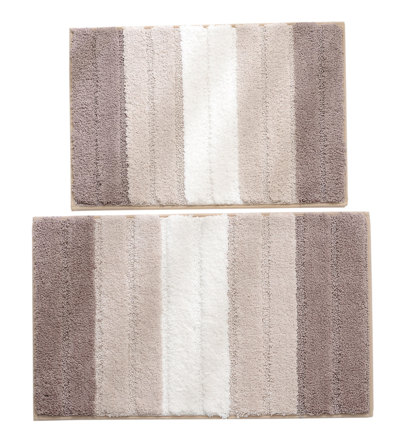 Custom Fluffy Soft Plush Striped Shower Rug Quick Drying Microfiber Tufted Bathroom Rug Non-Slip Bathroom Mat