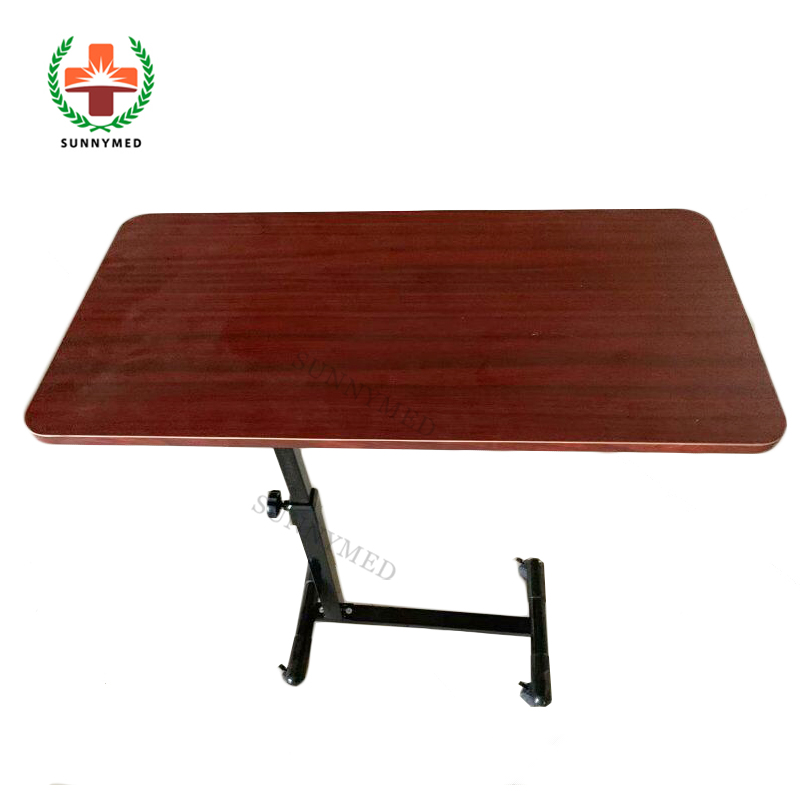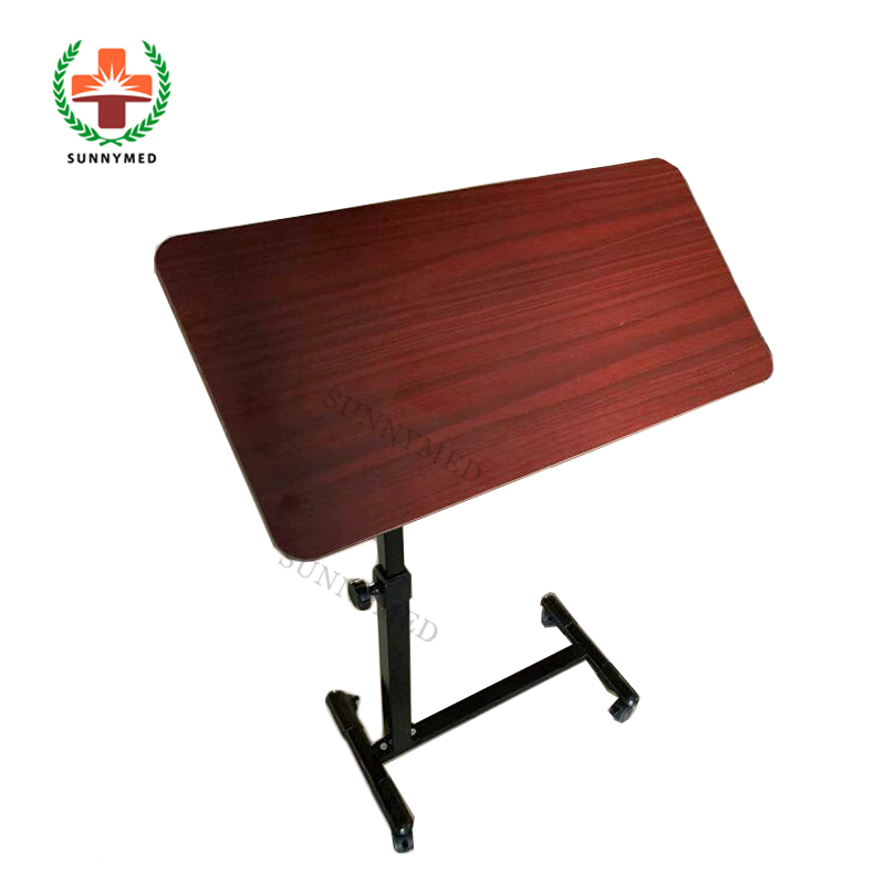 SY-R083 Adjustable Hospital Dining Table Medical Gas Spring Folding Bedside Table With Wooden Wheels