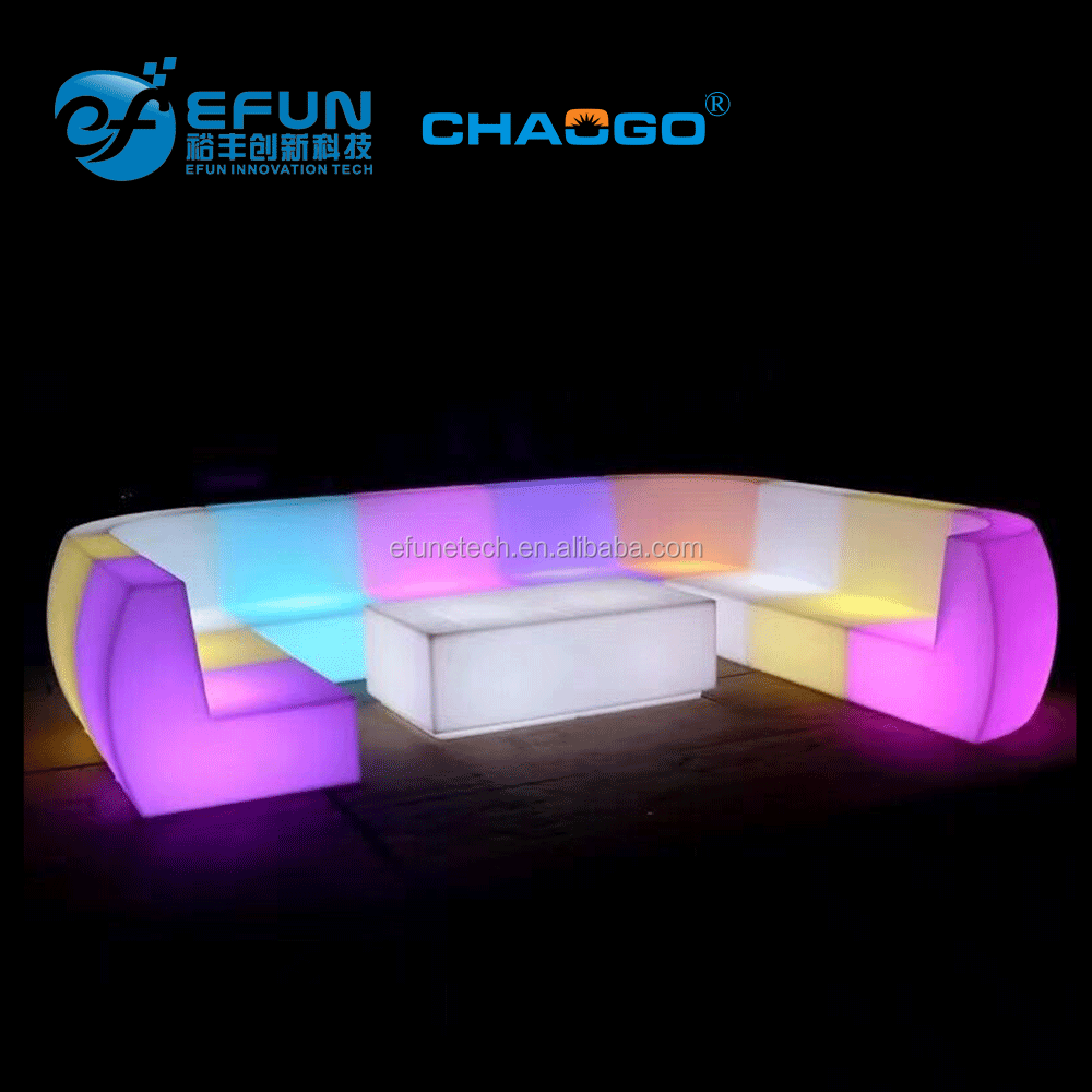 The led sofa chair is made of environmentally friendly and durable plastic PE. It has passed CE, ROHS certification and can be used both indoors and outdoors. Only one remote control is needed to turn on the LED lights of all plastic LED furniture within 15 meters, and change the color and brightness as you like. These LED light up stools can be used in parties, events, bars, nightclubs, KTV, hotels, restaurants, homes, gardens and many other occasions. Light up your life with our LED furniture!