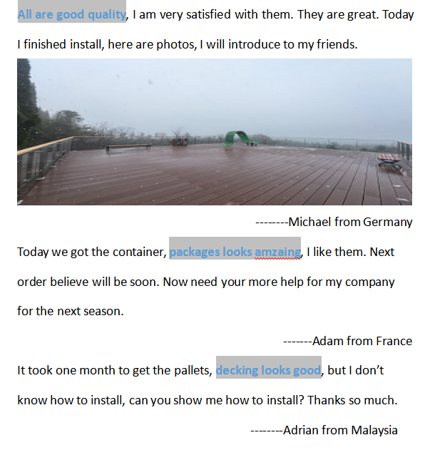 | product material: | Wood fiber+HDPE+additive | Packaging Details: | Wooden pallets, each 2 tons. Easy uninstall and good protection |