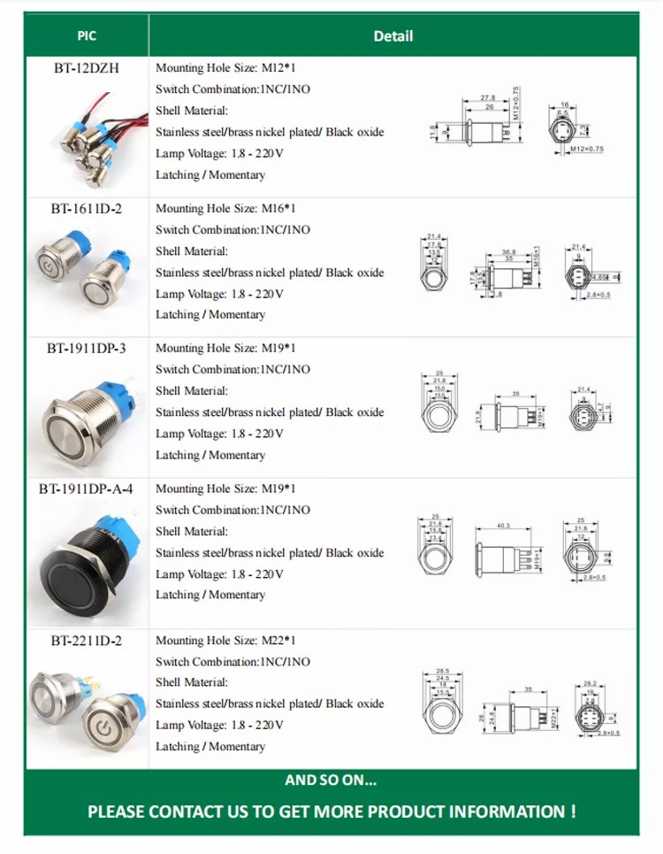 | Luminous type: | Ring/Power/Point/Custom LED | Switch combination: | 1NO/1NO1NC/2NO/2NO2NC |