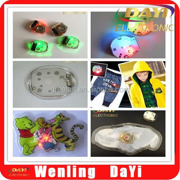 usage: Clothing/Shoe Accessories change: vibration switch color: as you wish Shipping Details: 10-15 days model: R104-W Battery: One CR2032 battery Flash time: 4 times one by one Packaging Details: 3000pcs/box Battery Life: 250,000-300,000 times Product Category: LED Glitter T-Shirt payment terms:..... -