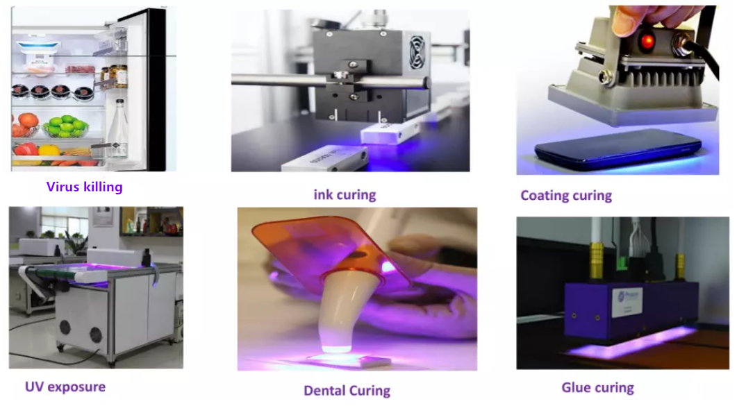 Our UV curing lamps are widely used in uv printers, 3D printers, uv curing machines, electronic bonding machines, UV detection, sterilization, etc.