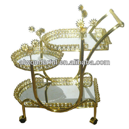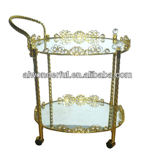 Mail packing: yes Material: Metal usage: Home Decor Furniture payment terms: L/C, Western Union, D/P, D/A, T/T, MoneyGram Origin: Guangdong, China model: Trolley with wheels and crystal decoration design style: traditional MOQ: 50 color: Gold silver product name: Trolley with wheels and crystal...... -