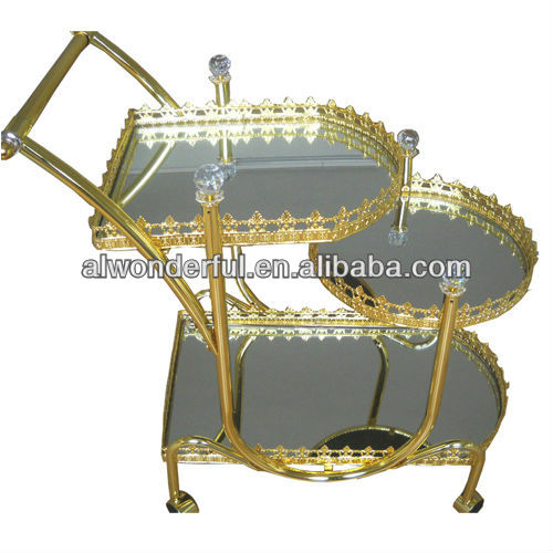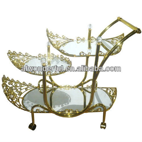 Luxury gold 3-tier wine catering wine catering hotel bar service trolley trolley stainless steel wheel trolley