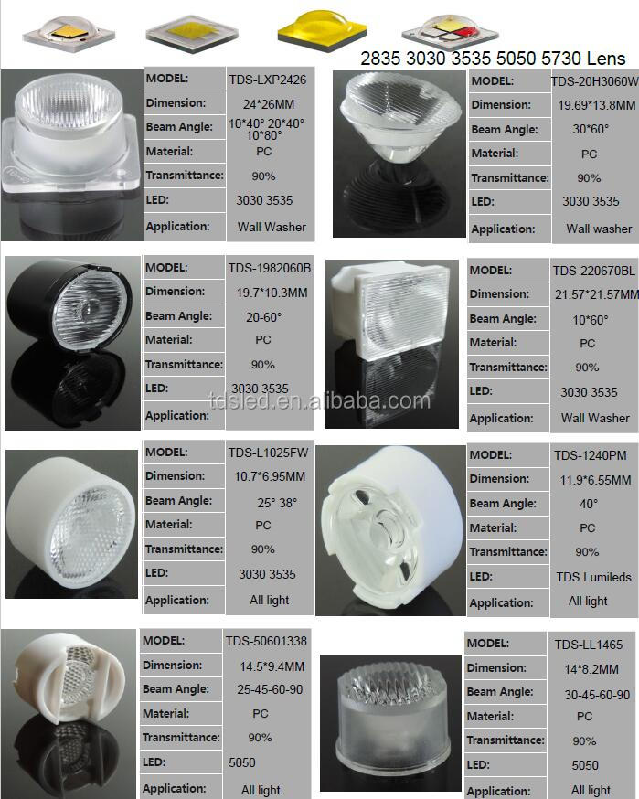 Viewing angle: 60°, 120°, 90°, 120° Transmittance: > 90%, > 90% brand: IHY Warranty (year): 2 years Warranty: 3 years usage: LED lighting product name: LED lens custom made: accept color: to clear Material: PC, acrylic, acrylic, acrylic sample: usable payment terms: L/C, Western Union, D/P, D/A,...... -