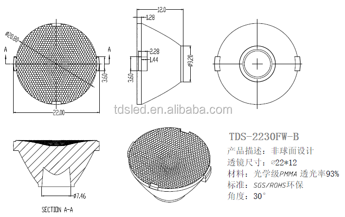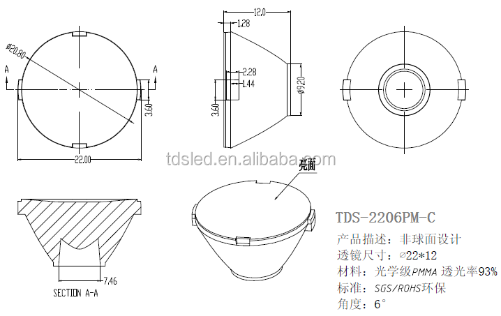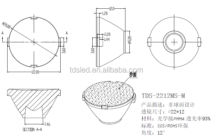 size: Depth 45*Height 24mm Sales unit: Single product Operating temperature: -40~90℃ Product weight (kg): 1 tolerant: ±0.1mm assembly: Glue|Tape|Screws Gross weight of single piece: 1.000kg Beam angle: 15,24,36.50 Warranty period (years): 5 years Viewing angle: 15°,24°,36°,50 Material:...... -