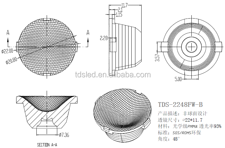 brand: TDS diameter: 5720 mm Packaging Details: OEM package/ boxed/ 1 bag = 20 pcs model: TDS-W5720 structure: flat concave Product weight (kg): 0.015 Viewing angle: 3X180 Supply capacity: 5000 pieces per week Additional lenses: Additional 5% on orders payment terms: L/C, Western Union, MoneyGram,..... -