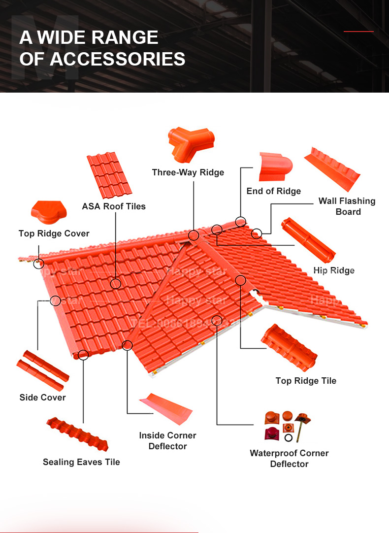 type: Ordinary tile application: Public building/civil building/villa/hotel etc., villa Wave distance: 160mm Warranty: 2 years width: 1050mm length: multiples of crazy tones feature: waterproof brand: Hans design style: contemporary product name: asa roof tiles After-sales service: online technical....