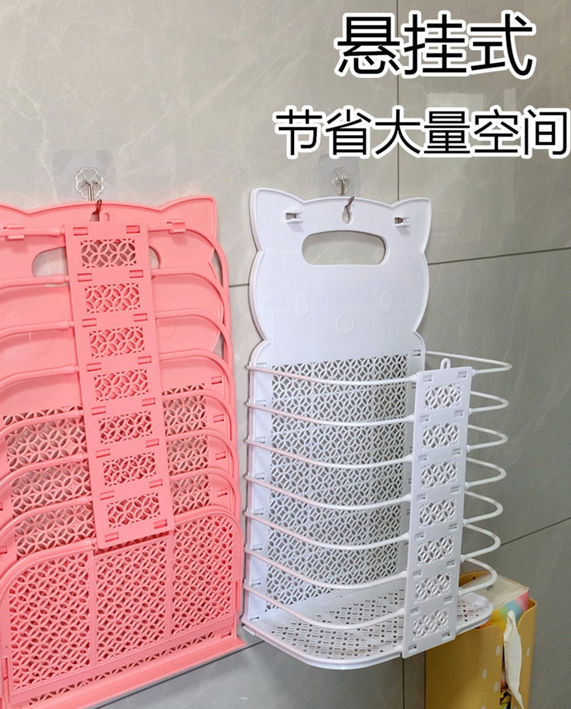 Hot Sale Hanging Laundry Basket Trash Can Foldable Plastic Laundry Basket Basket Bathroom Clothes Storage