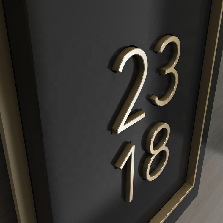 color: Customized color, silver, gold, brushed, mirror Application place: Houses, buildings, offices, hotels, hospitals, etc. Install: tighten After-sales service: Online technical support, free spare parts port: Guangzhou, Shenzhen type: door panel Door Type: house number Number style: Etching,...... -