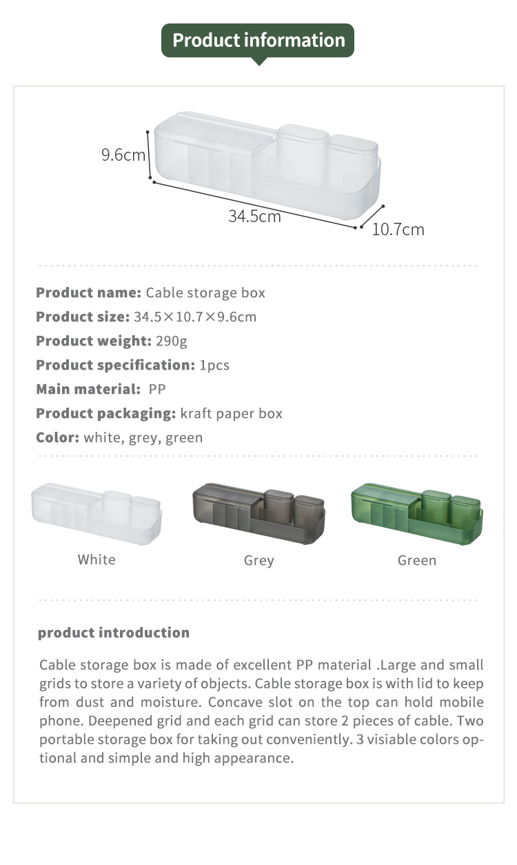 | Specification: | 34.5x10.7x9.6cm | usage: | Data cable storage box |
