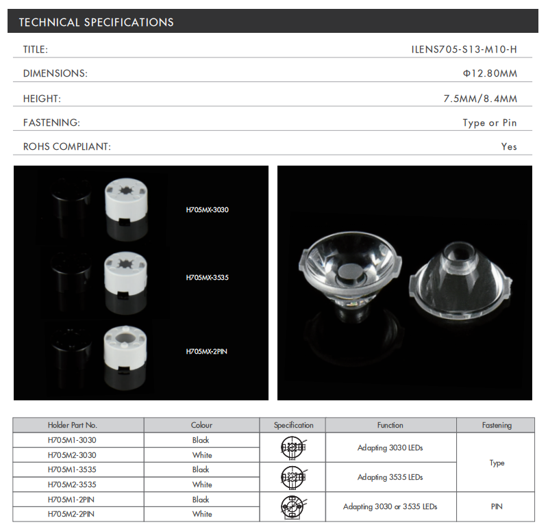 | model: | ILENS705-S13-M10-H705M2 | Key words: | LED lens |