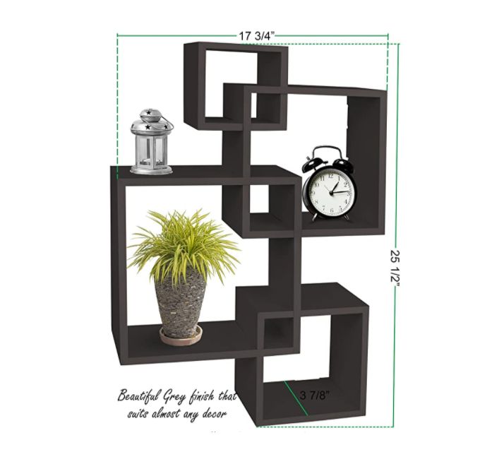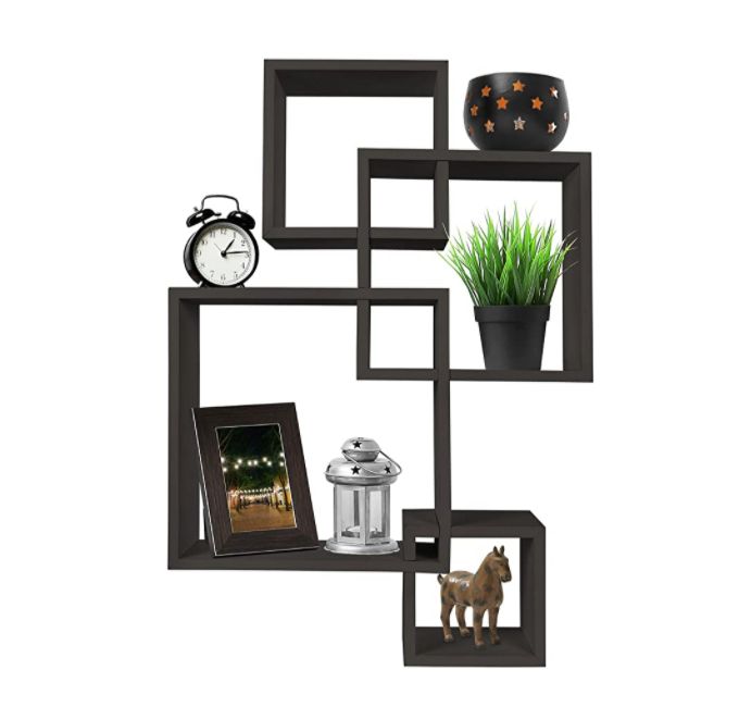 Hot Sale 4 Cube Intersecting Wall Mounted Floating Shelves Espresso Finish Wooden Cube Shelves |