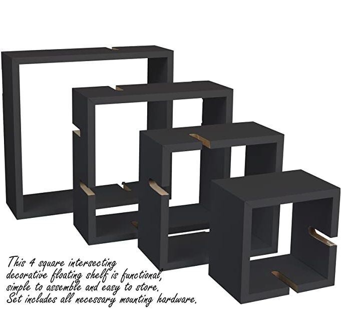 Hot Sale 4 Cube Intersecting Wall Mounted Floating Shelves Espresso Finish Wooden Cube Shelves